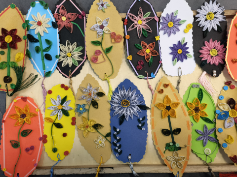 快来看看我们《创意手工》班的作品吧!孩子们用衍纸通过卷曲,捏压形成原始设计形象的一门折纸艺术,是以专用的工具将细长的纸条一圈一圈卷起来,在将形状各不相同的小零件组合创作,形成不同的画面。