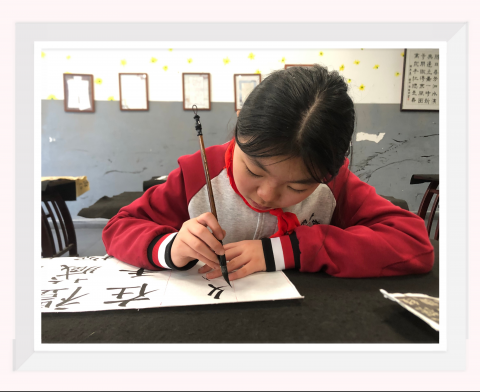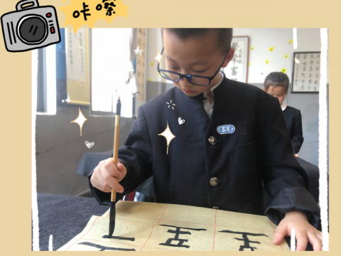 《书法》 是一种静态的汉字表现艺术,它的美在于对立中的和谐;黑与白的搭配,孕育出了无声的音乐、纸上的舞蹈。本学期书法选修课及社团课中,多数学生几乎都是有一定的书法技能,于是本学期的书法课就立足于提高学生的书法技能和基本的审美意识。一个良好的学习氛围能让学生整个身心都沉静其中,从而达到事半功倍的效果,而教师的专业能力和个人学识,则为学生打开了一道与古人沟通的窗户。每次教师走到课堂,孩子们都迫不及待纷纷摩拳擦掌,急不可待想要练起来了。