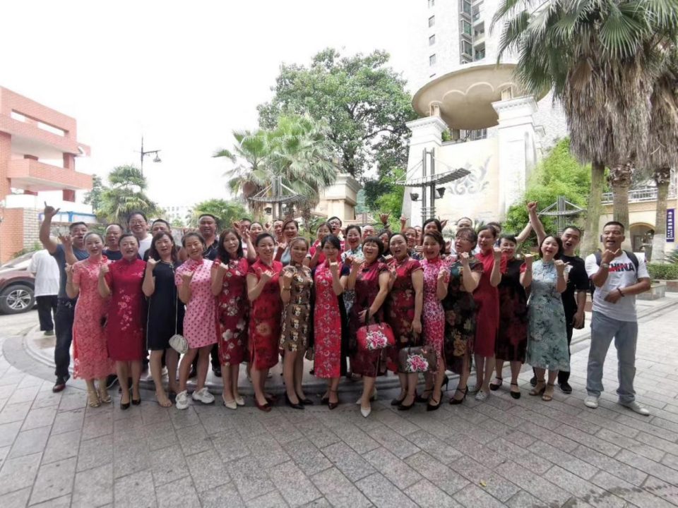 往日严厉的老师们今天一改往日风格,换上了端庄大方的旗袍,画上了精致的妆容,只为送上他们的祝福与鼓励。微风吹过女士们垂落的青丝,爱与希望伴着风儿吹向准备出发的高三学子们。