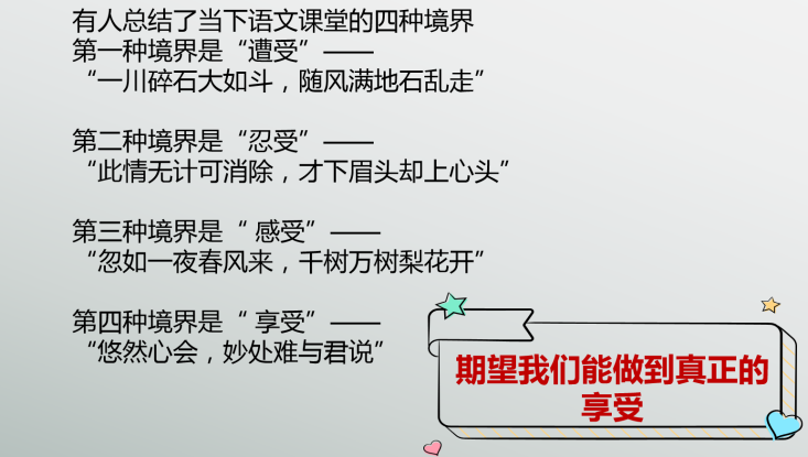 通过本次培训希望老师们能在今后的教学中努力提升自己的业务水平,精心研备好每一节课,让我们的学生能真正地享受课堂。也希望老师们有所收获,在即将开始的第五届微课比赛中绽放光彩,赛出为明教师的高质量教学水平!
