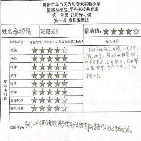 时光荏苒,一转眼,新学期开始了。为了进一步促进家校沟通,让各位家长能够更清楚地了解孩子本学期在校表现和学习生活情况,春天校区道德与法治组的老师以制订“整洁小调查表”为契机,着力“五育并举”,加强“五项管理”,开展家校共育活动。