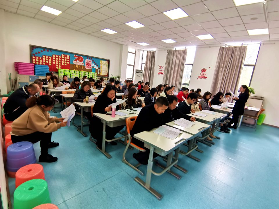 2019年11月8日,阴。为明温泉实验学校学生作品展示区,一年级小朋友们用片片落叶拼就的创意画,静静地倾诉着深秋最后的秘密。上午8时许,各年级教室里都是师生们忙碌的身影,调试设备、排练节目、安放桌椅,一切都井然有序。高年级小小主持人们则在僻静处一遍遍地核对流程,直至稚嫩的面庞上渐渐有了胸有成竹的表情。谁心里都清楚此时此刻,受邀步入校园、深入课堂,进一步了解学校管理与发展,体验孩子们校园学习、生活的家长们,脚步已然临近。