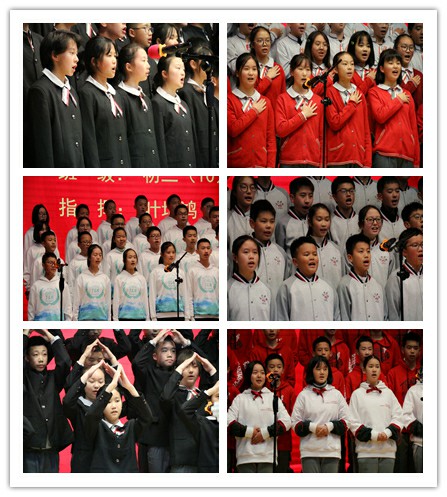 在现场,《映山红》被女子班唱出了柔美,《强军战歌》被初二10班唱出了刚强;有的整首合唱、有的歌曲串烧,有的清唱、有的伴奏。《我们走在大路上》、《黄河大合唱》、《龙的传人》等一首首脍炙人口、催人奋进的红色歌曲,或激昂、或雄壮、或嘹亮,各显特色,异彩纷呈;精彩的表演抒发了广大为明学子对党和祖国的热爱之情,展示了积极向上的为明精神风貌,合唱赢得了观众的阵阵掌声。