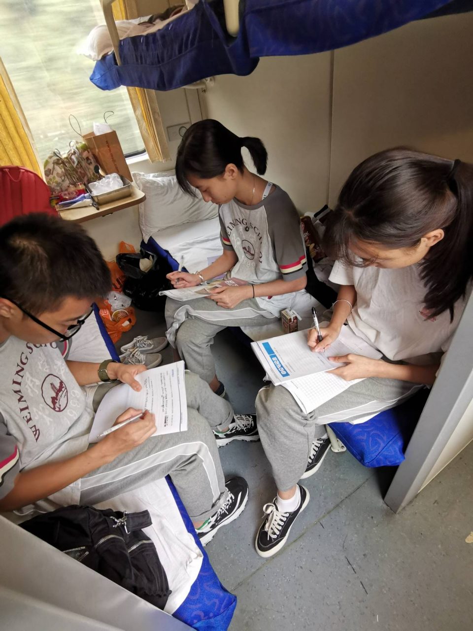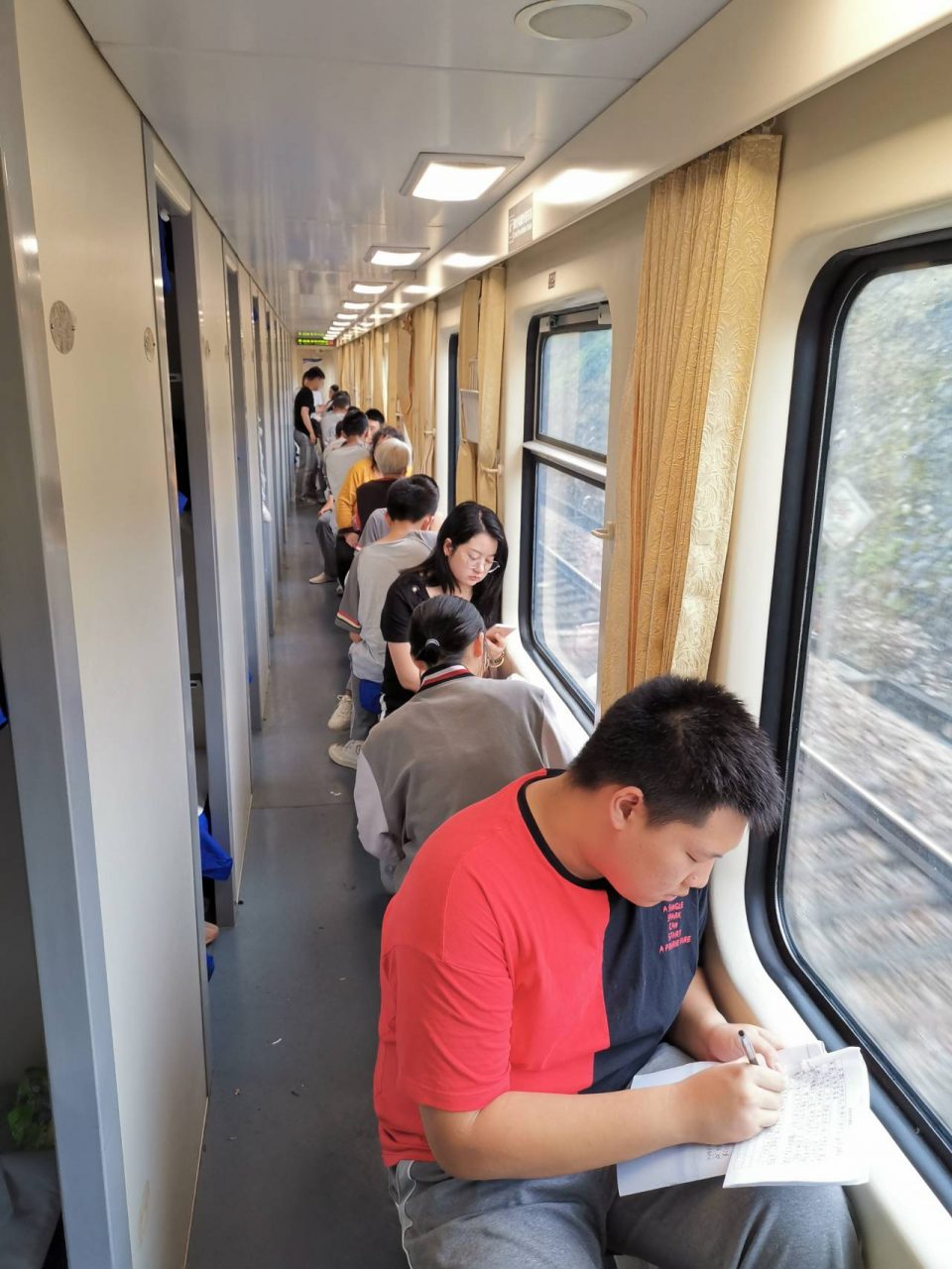临近中午,同学们陆续完成了限时练和研学手册。同学们拿出采购的食品开始大快朵颐,喷香的食物味道在火车上蔓延开来。午饭结束后,肖梅老师还在火车上为同学们进行了限时练的答疑,利用零碎时间提高教学成绩,为我校如此敬业的老师点赞!