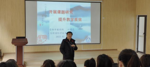 “学向勤中得,萤窗万卷书。”为了切实推进学校教育教学工作的可持续发展和教师的专业成长,进一步树立“问题就是课题,反思就是研究”的教育科研理念,促进教学质量的提升,2022年2月23日下午,为明春天特邀请贵阳市教育科学研究所专家叶明亮老师为全校教师做主题为“课题研究提升教学质效”的专题讲座。
