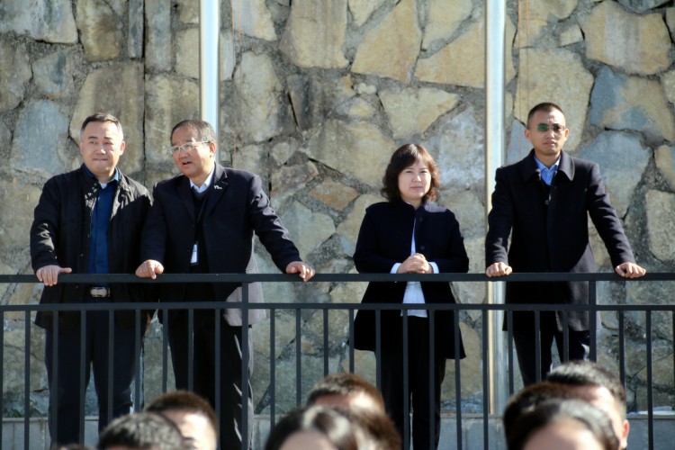 随后,我校崔校长发表讲话,他说,此次激情跑操展示表现很好,从每个班的方队展示上看到了一种精气神,值得表扬。