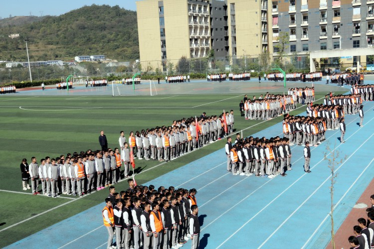 此次跑操比赛依旧实行初中部和高中部分开展示的原则,级部下设一、二、三等奖,各班进行角逐。铃声一响,全体师生如离弦之箭,迅速的到田径场集合,不到三分钟,全体学生整齐划一的站在了各班指定位置。