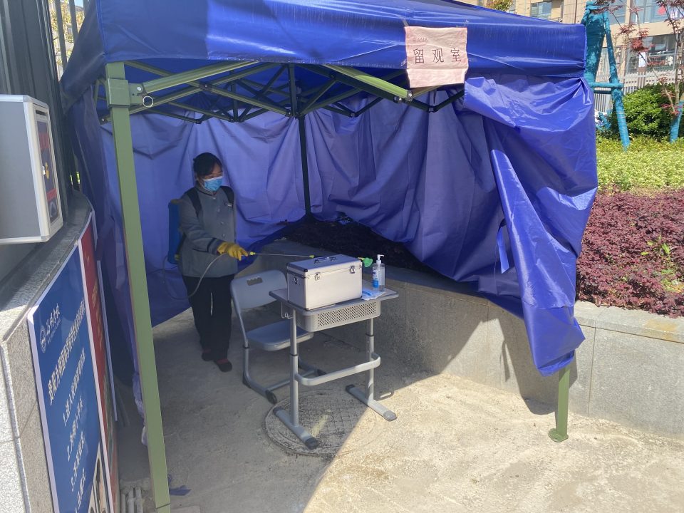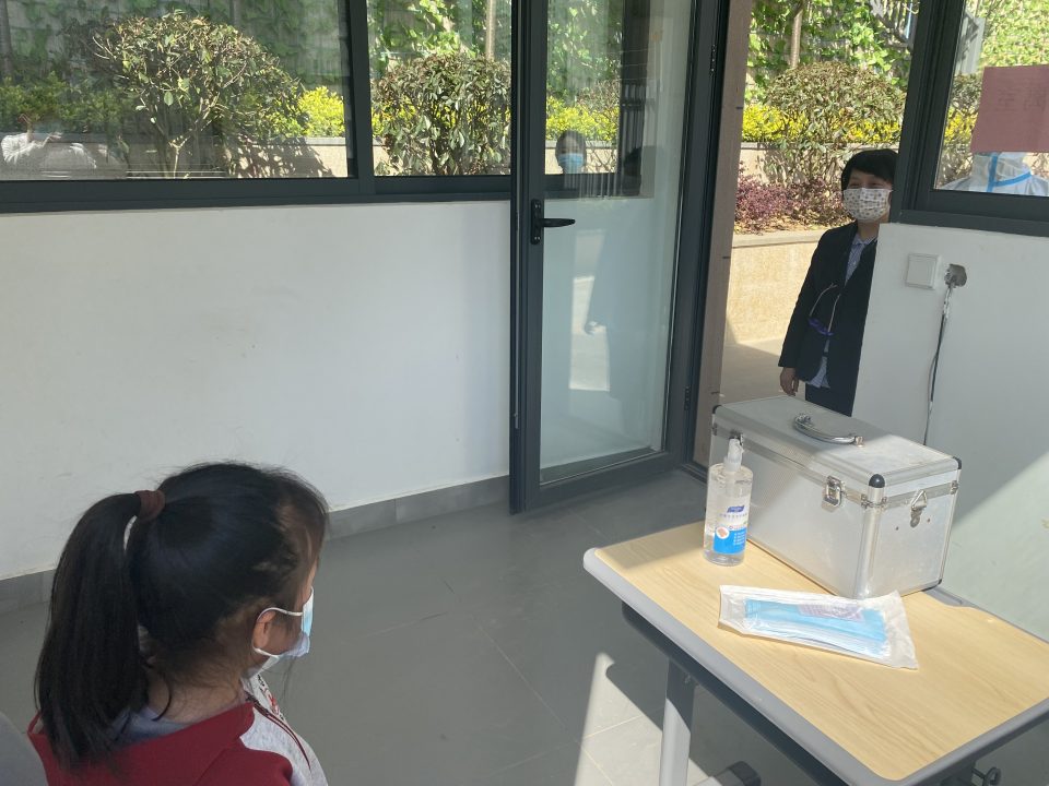 本次演练从学生在测温点出现体温异常、模拟校内出现确诊病例的真实场景,将确诊病例处置的全过程进行了真实呈现。 当校内出现体温异常的同学,密切接触者前往留观室或隔离教室隔离,校医进行现场全方位消毒杀菌,根据接触情况分批次进行全员体温检测,全校启动紧急响应。