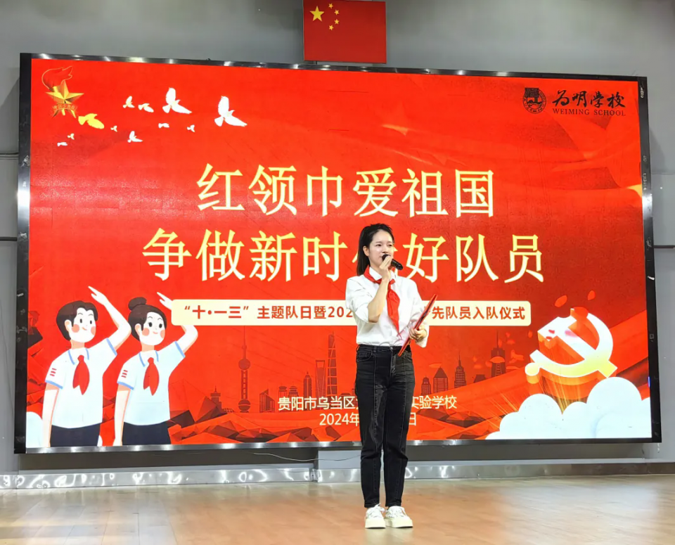 为激发新队员的光荣感、责任感、培养队员的主人翁意识,继承和发扬中国少年先锋队的光荣传统,引导队员了解队史,掌握队礼仪,感受作为一名光荣的少先队员的神圣使命,争做热爱党、热爱祖国、热爱人民,有知识、有品德、有作为的好少年,为明温泉实验学校举行“红领巾爱祖国,争做新时代好队员”2023级第二批少先队员入队仪式活动。