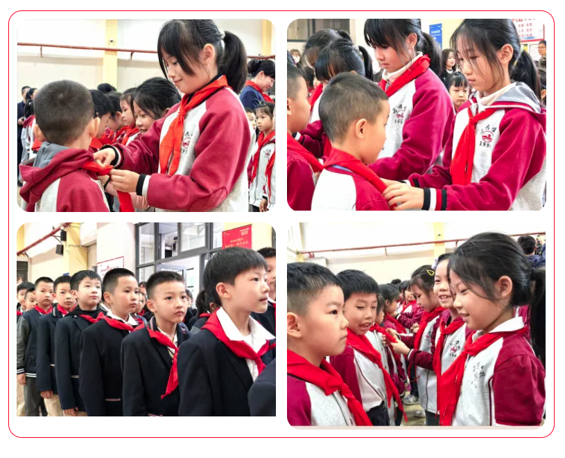 红领巾是骄傲,是传承,是希望。三年级的老队员为新入队的孩子们佩戴鲜艳的红领巾,它蕴含着祝福,寄托着嘱托,更承载这无限的期望!标准的敬礼,贴心的礼物,温暖的拥抱,这是红色基因传承的神圣时刻。