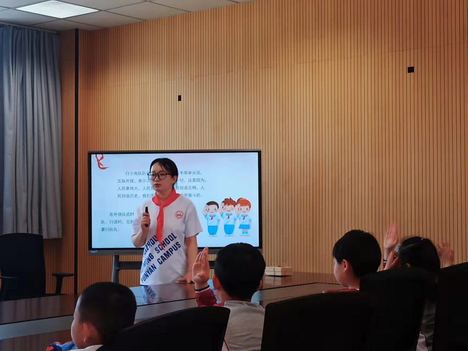 为了让一年级即将加入少先队的学生们更加深入的了解少先队组织、热爱少先队组织,贵阳市云岩区为明小学5月6日继续开展了“红领巾·心向党”队前培训,德育主任蔡晶为即将成为新队员的同学进行深入浅出的讲解,让孩子们对少先队的了解更加深刻。