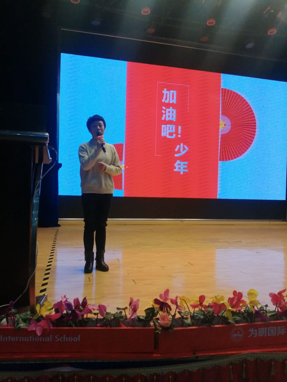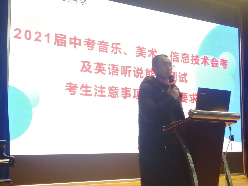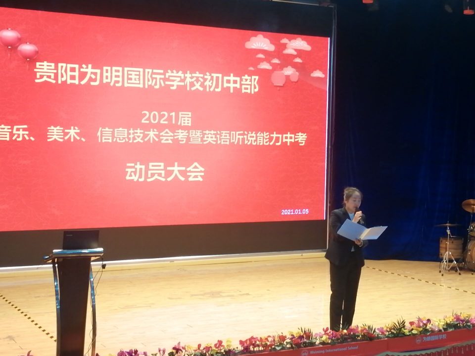 2021年1月5日至6日初中部初三年级在嘹亮国歌声中举行了一场振奋人心、鼓舞士气的“音乐、美术、信息技术会考暨英语听说能力中考”动员大会。大会由初三年级德育组长杨瑛老师主持。