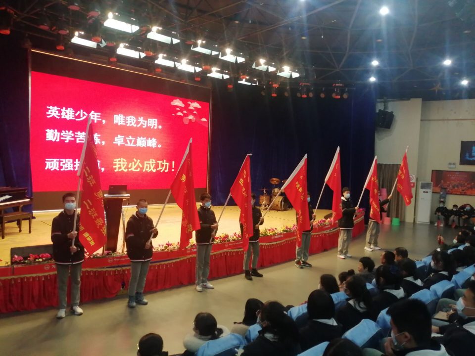 最后,初三各班学生高举班旗、高呼班级口号,所有为明学子在激情昂扬中大声喊出“英雄少年,唯我为明,勤学苦练,卓立巅峰,顽强拼搏,我必成功”的口号。
